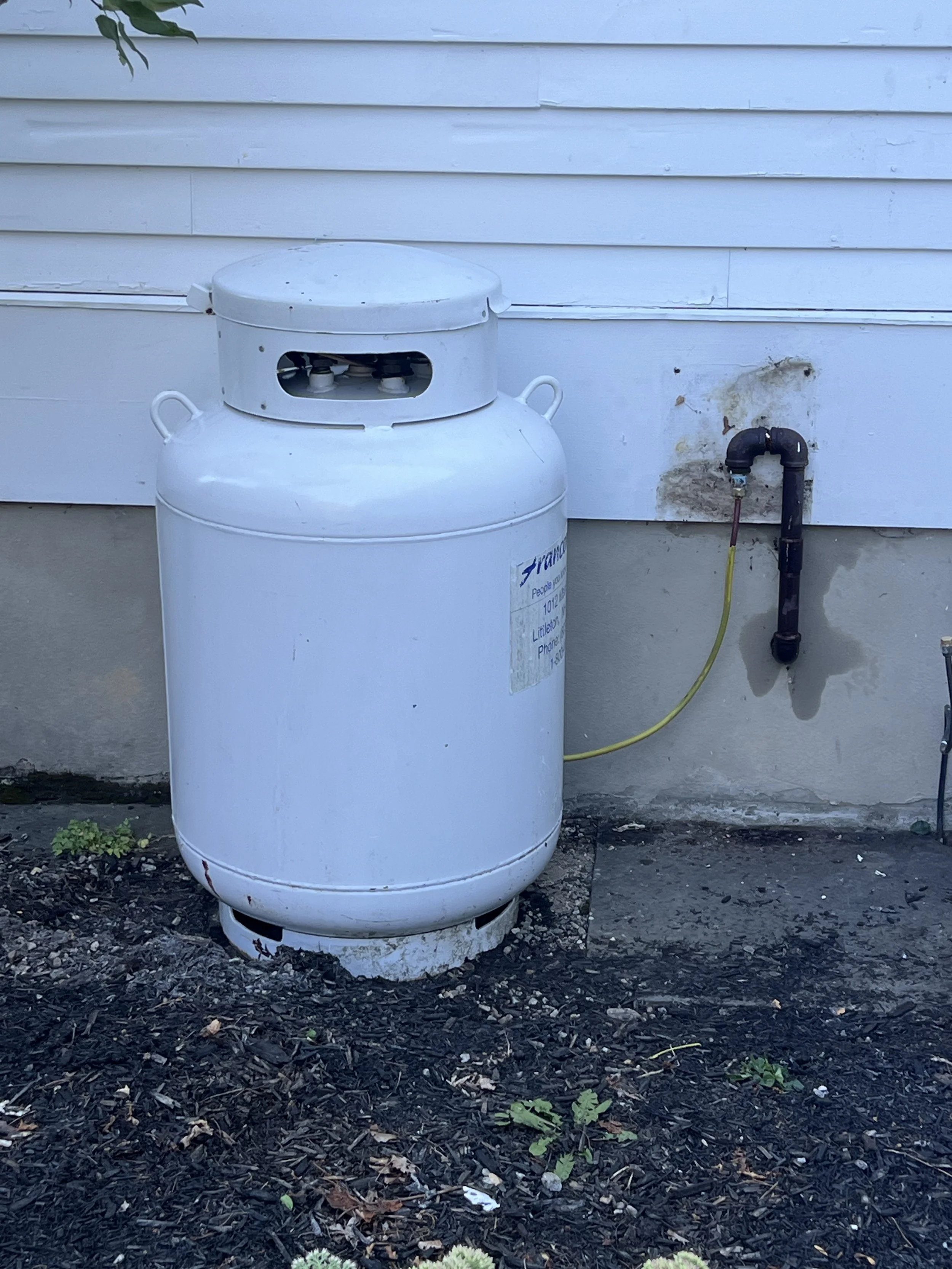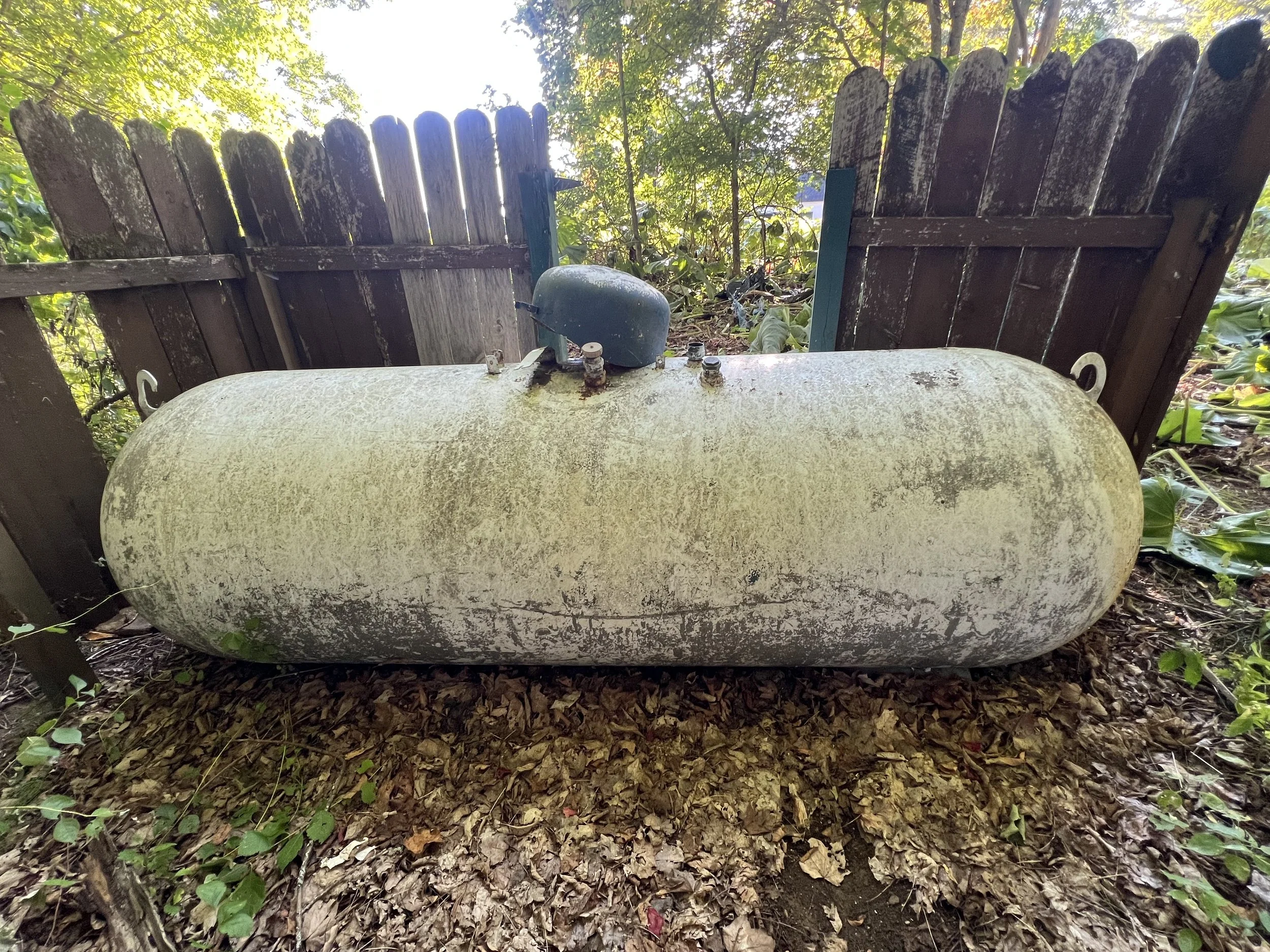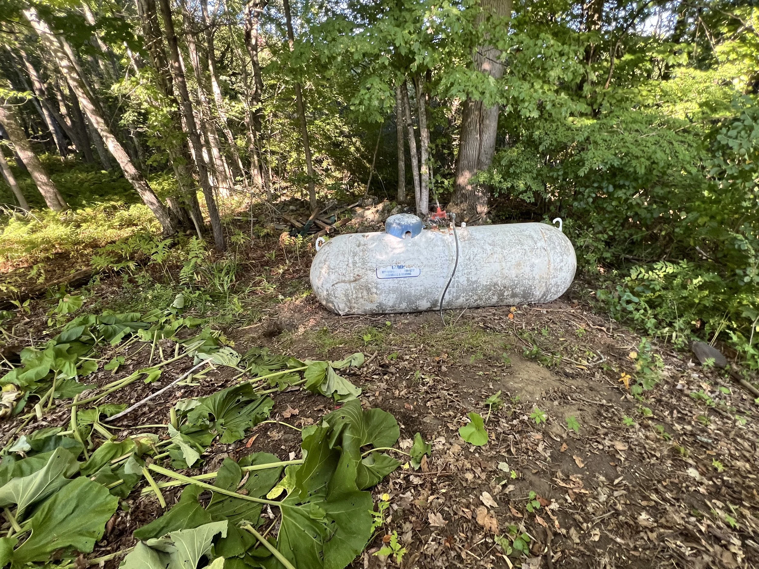The house came with a 1971 500-gallon propane tank, sitting alone in the woods, nearly a hundred yards from the house. It was rusted, unlevel, and connected by a buried line that split somewhere underground — one leg to the house, another to the pool house. No tracer wire. No shutoff valves. No markings. Just a half-century-old underground guess.